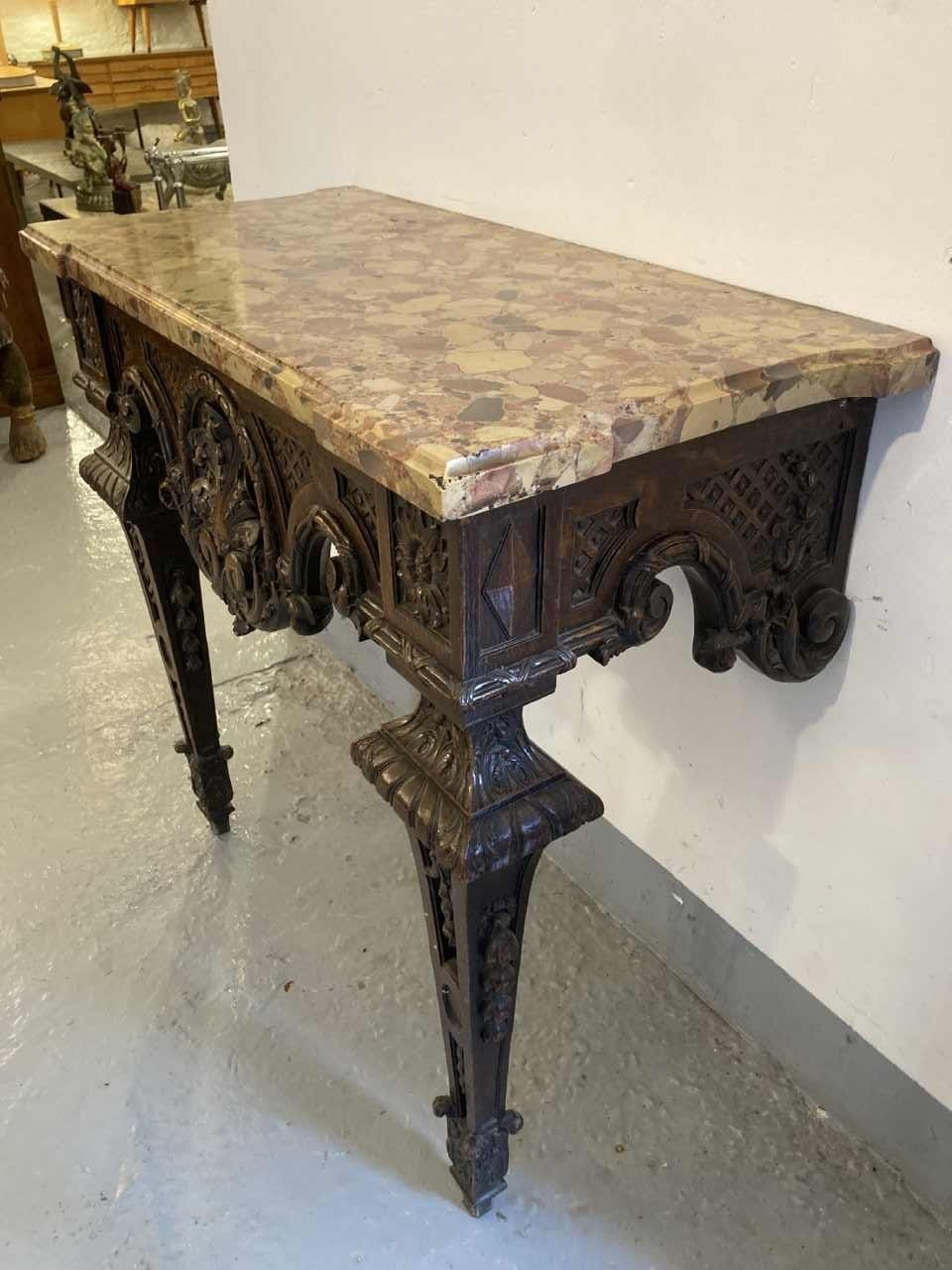 Console murale en chêne sculpté, dessus en marbre, XIXe siècle