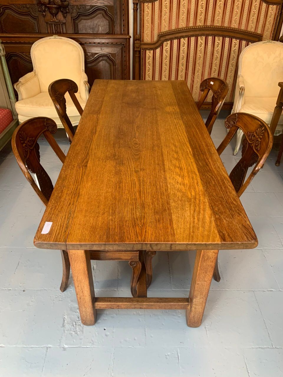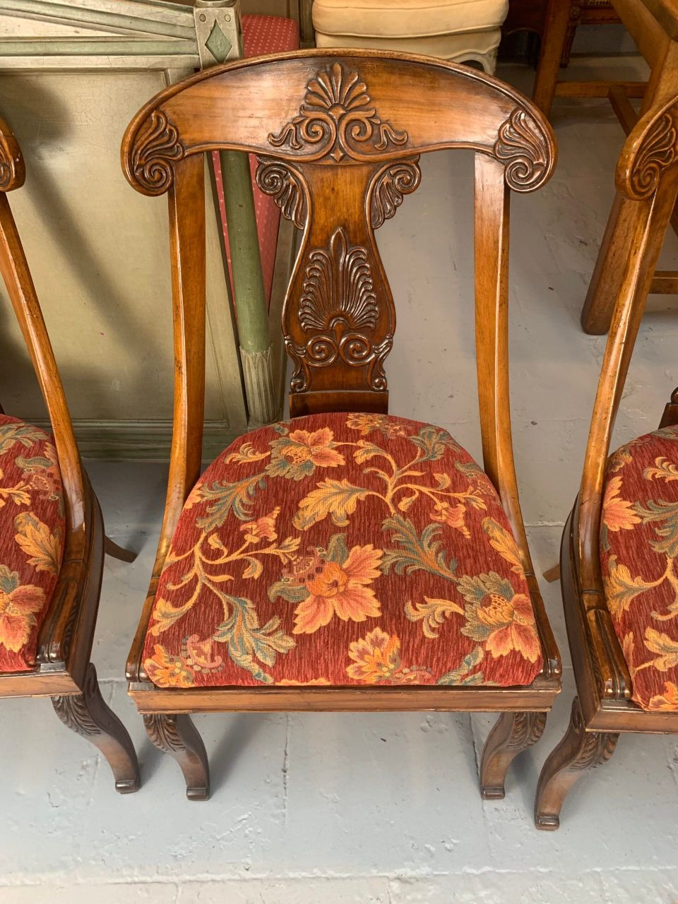Lot de 4 chaises en bois sculpté et à garnissage fleurie