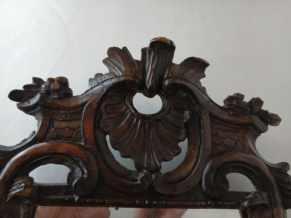 Vieux miroir en bois sculpté de style liégeois datant du 19 siècle
