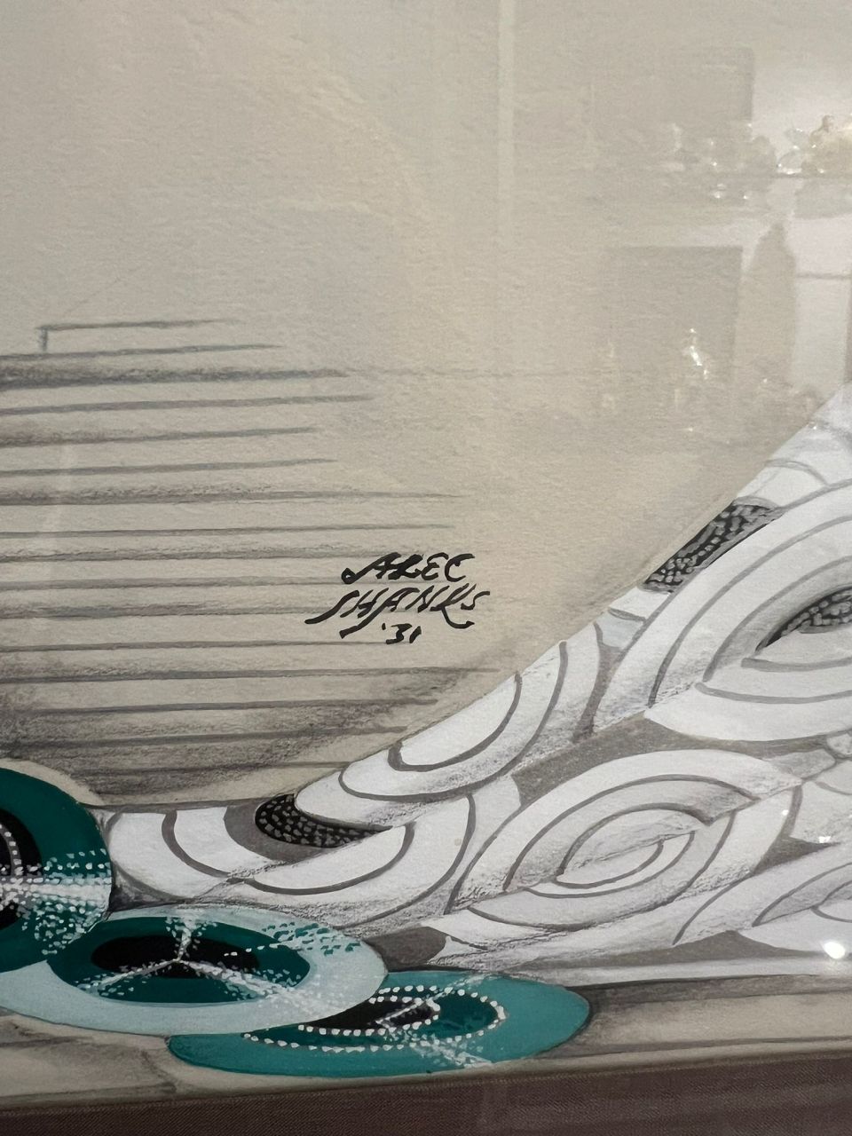 Œuvre art déco sur papier – cadre métallique argenté
